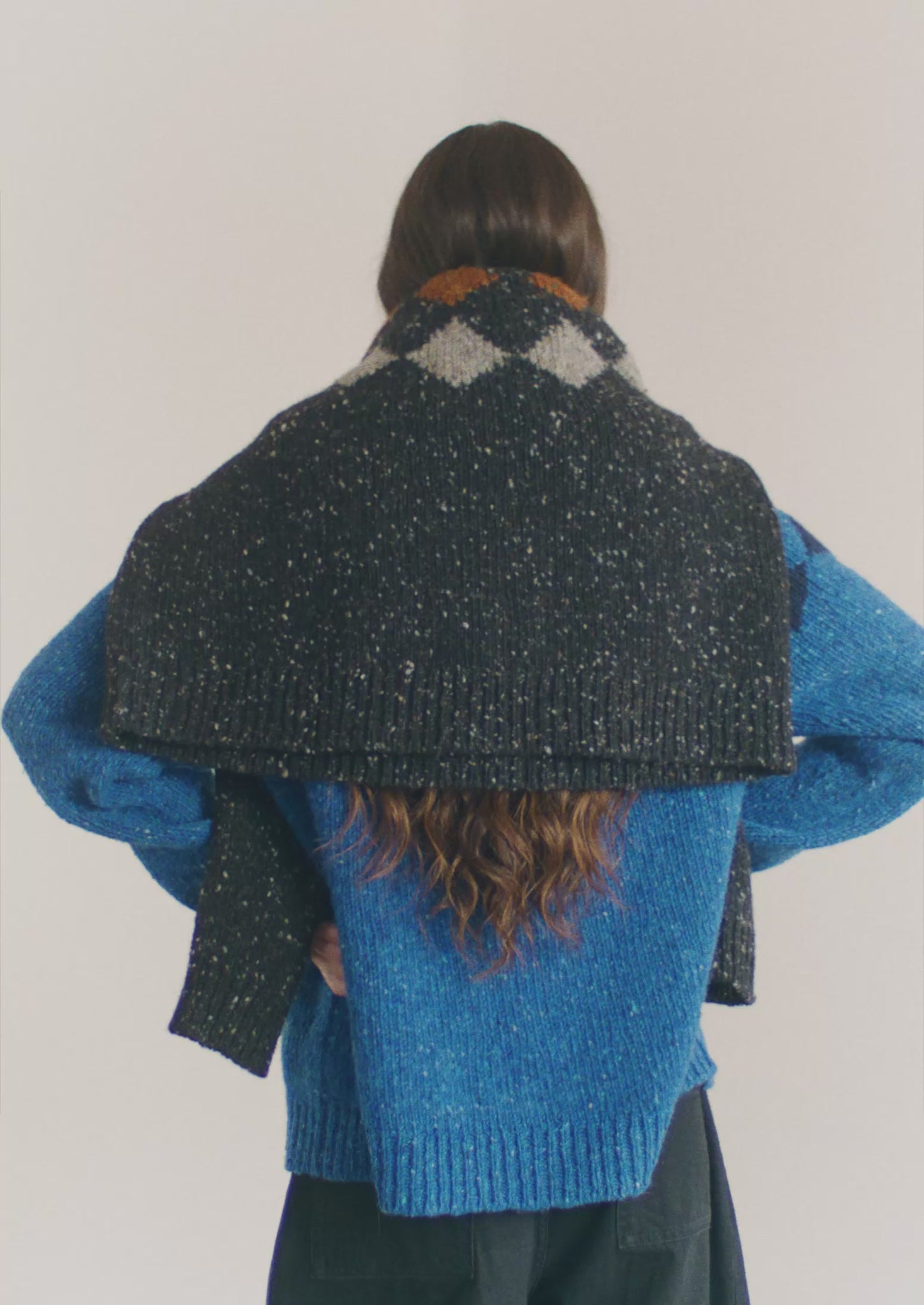 Donegal yarn. Diamond patterning. Ribbed edges.