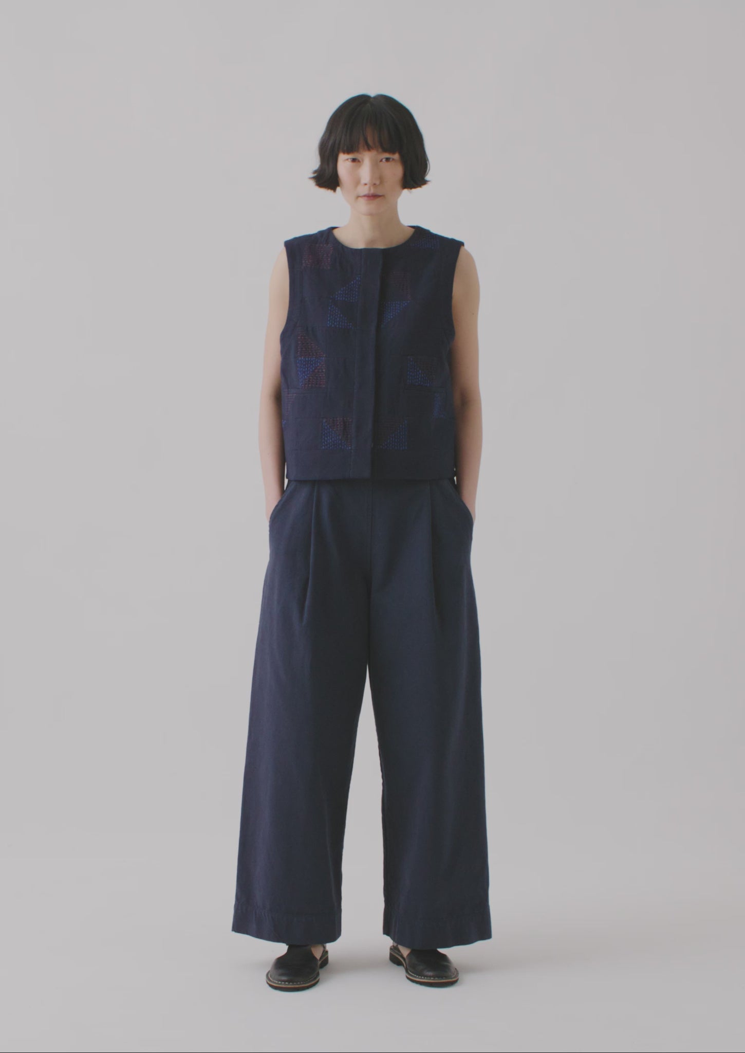 Our pleat front pants are made from a soft organic cotton canvas. The pants are garment-dyed, a process that gives each piece a natural colour variation. Shaped with knife pleats at the waist and buttoned waist tabs, inspired by workwear styles.