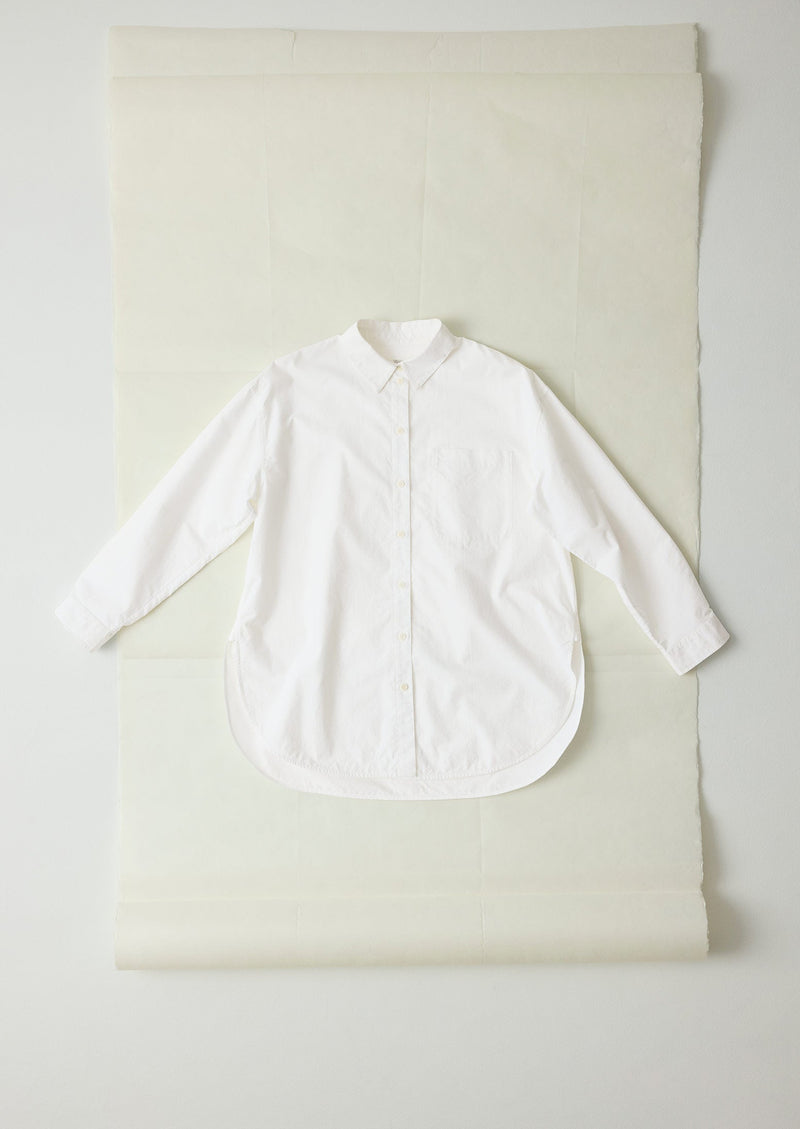Our oversized shirt is cut from crisp organic cotton Oxford, with a patch pocket on the chest and a curved hem which falls slightly longer at the back.