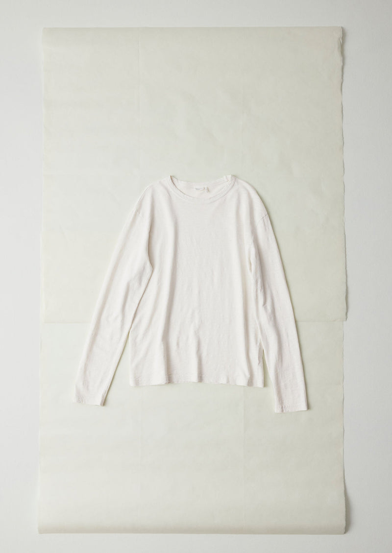 Lightweight slubby cotton jersey. Garment-dyed. Crew neck. Long sleeves.