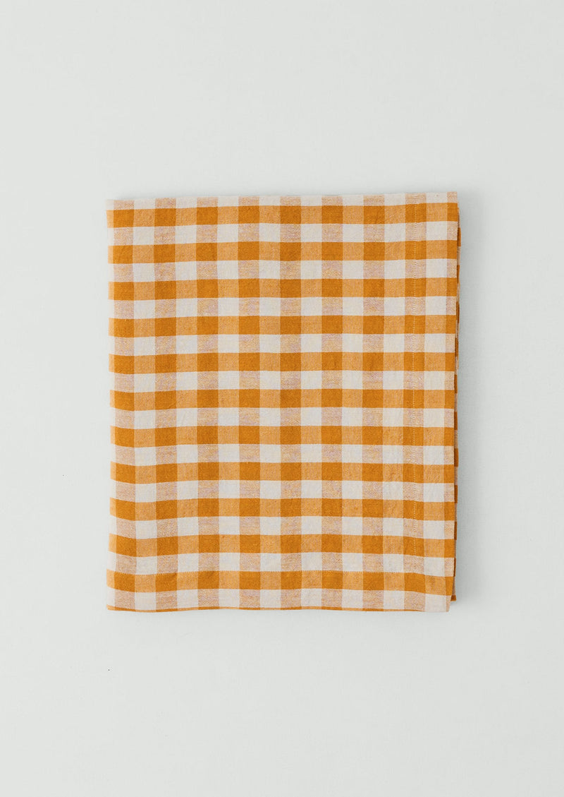 Linen and cotton-blend tablecloth inspired by relaxed, warm afternoons spent in an orchard. Patterned with checks, woven in India and finished with deeply hemmed edges.