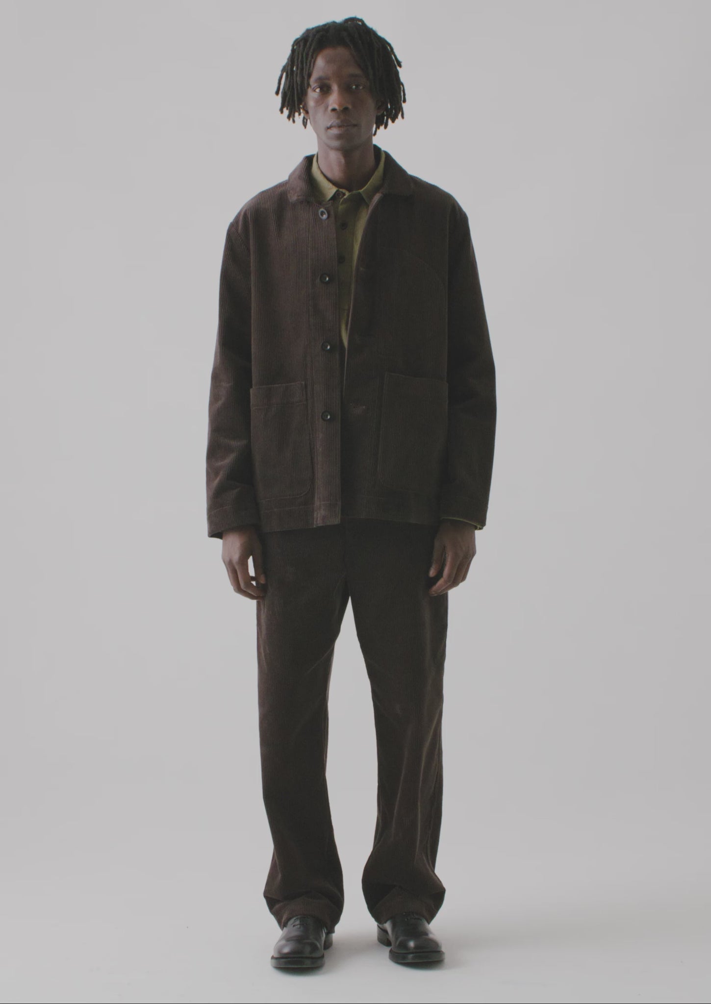 Organic cotton cord. Patch pockets. Internal curved chest pocket. Rounded collar. Centre-back seam. Fully lined. Corozo buttons.