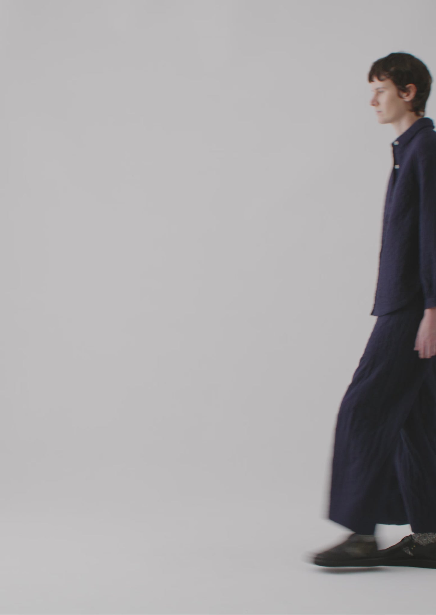 Our pants are made from layered organic cotton and quilted using hand-guided machine stitching in a wide stripe formation. The texture is defined by panelled construction, creating natural creases that lend a softly crinkled effect. Featuring in-seam pockets and an elasticated waistband for comfort.