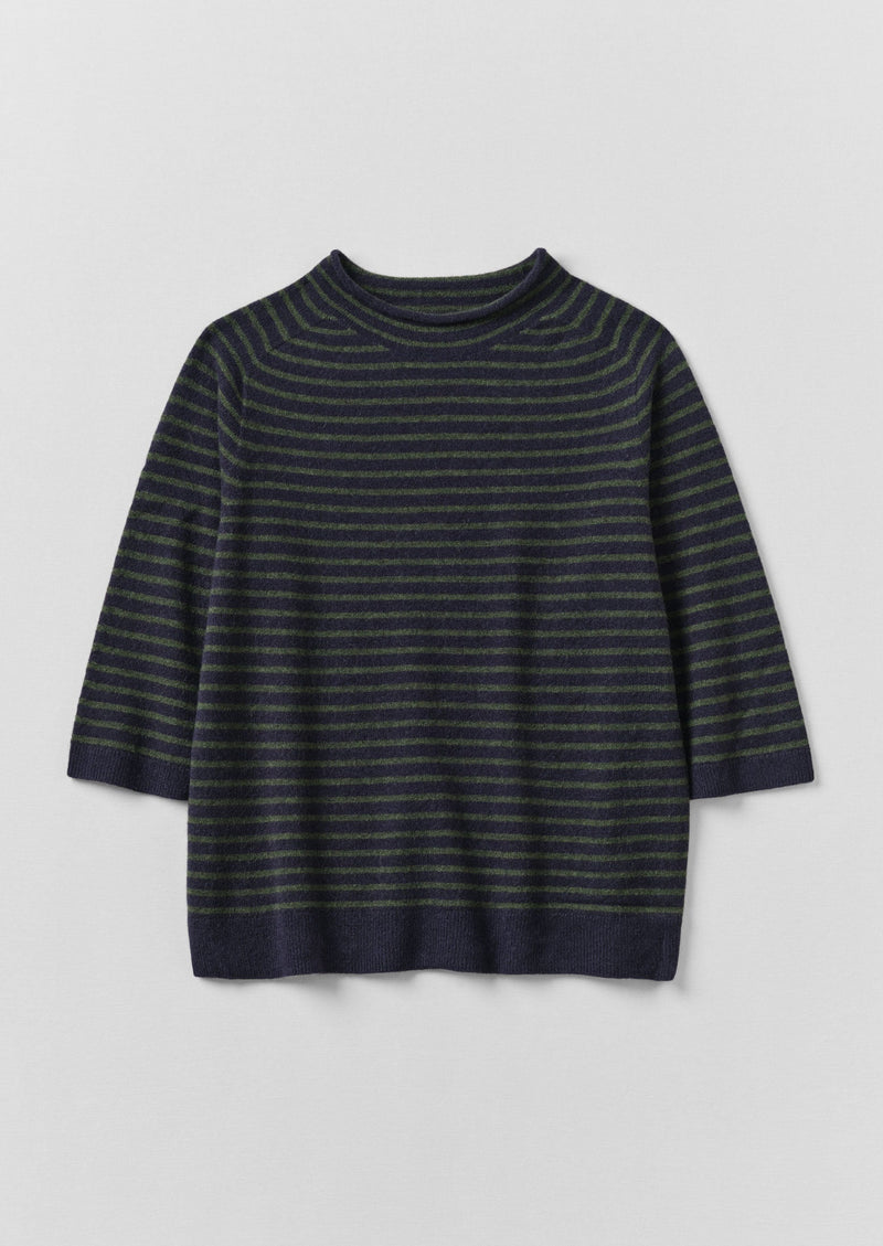 Our striped sweater is made from a fine merino wool blended with cashmere for softness. Knitted without seams to an easy shape with a high rolled neckline, with sleeves falling to elbow length.