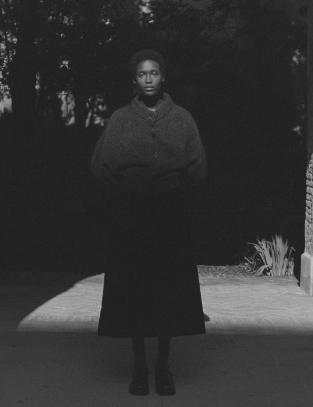 Our soft wool and mohair blend cardigan is shaped with a high ribbed neck and rounded sleeves, creating a sculptural silhouette. The dipped back hem enhances its rounded form, while corozo buttons and ribbed trims complete the design.